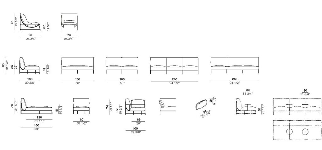 Ses différents modules sont personnalisables avec divers revêtements, cuirs, tissus etc… mais dispose également en option, d’une tablette d’appoint, directement intégrée au canapé. Celle-ci est également personnalisable, tout comme le piètement de la structure du canapé Rita.